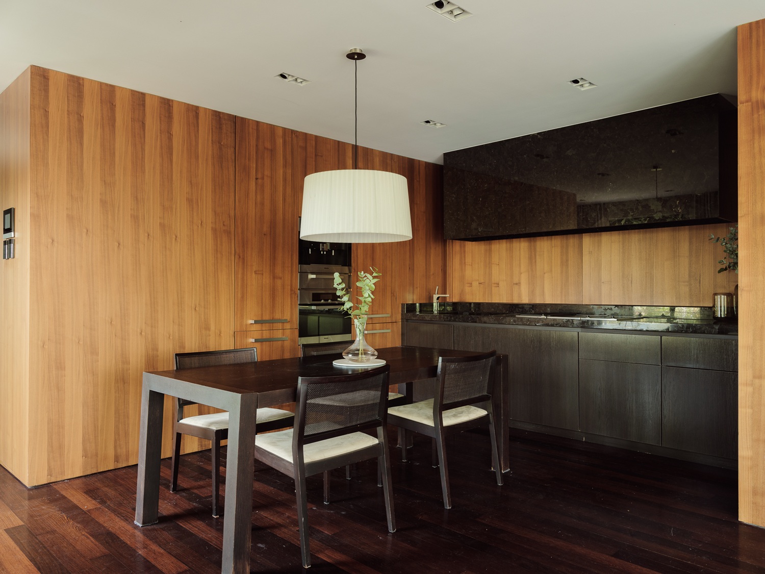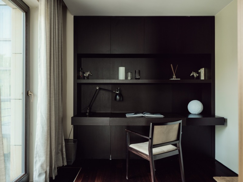 –> większość elementów wyposażenia sprowadzona na specjalne zamówienie z Włoch: drzwi Rimadesio, garderoba Poliform, stół i krzesła Andrew Word, sofa Flexform.