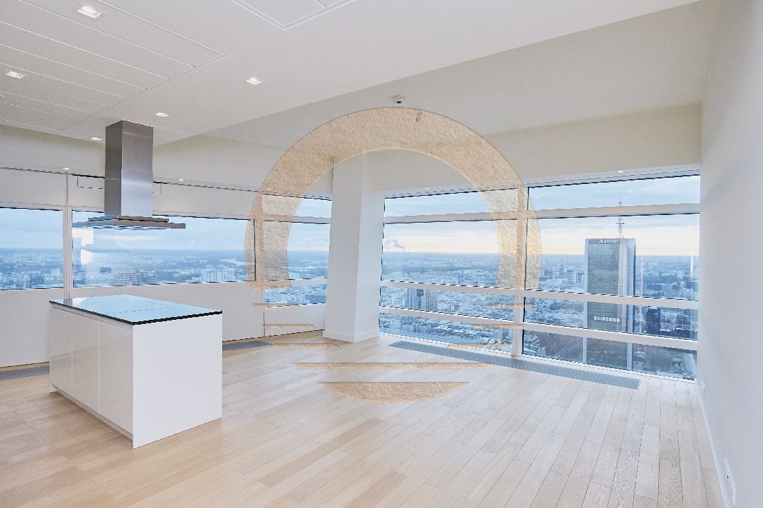Apartament zlokalizowany jest na 38 piętrze, położenie narożne – gwarantuje przyszłemu właścicielowi najpiękniejsze widoki na Warszawę: