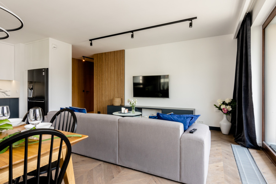 Apartament mieści się w nowoczesnym budynku z 2020 roku.