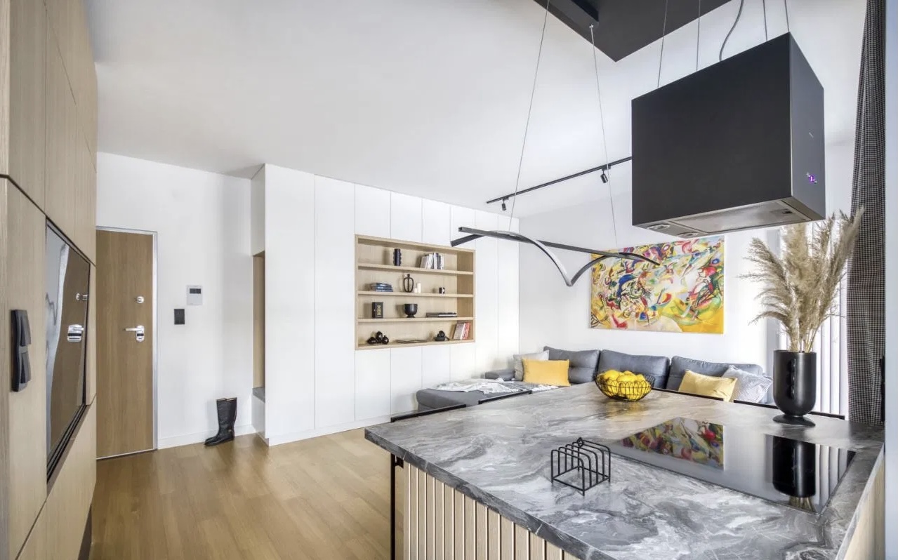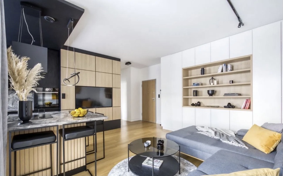 Przestronnego salonu z aneksem kuchennym
