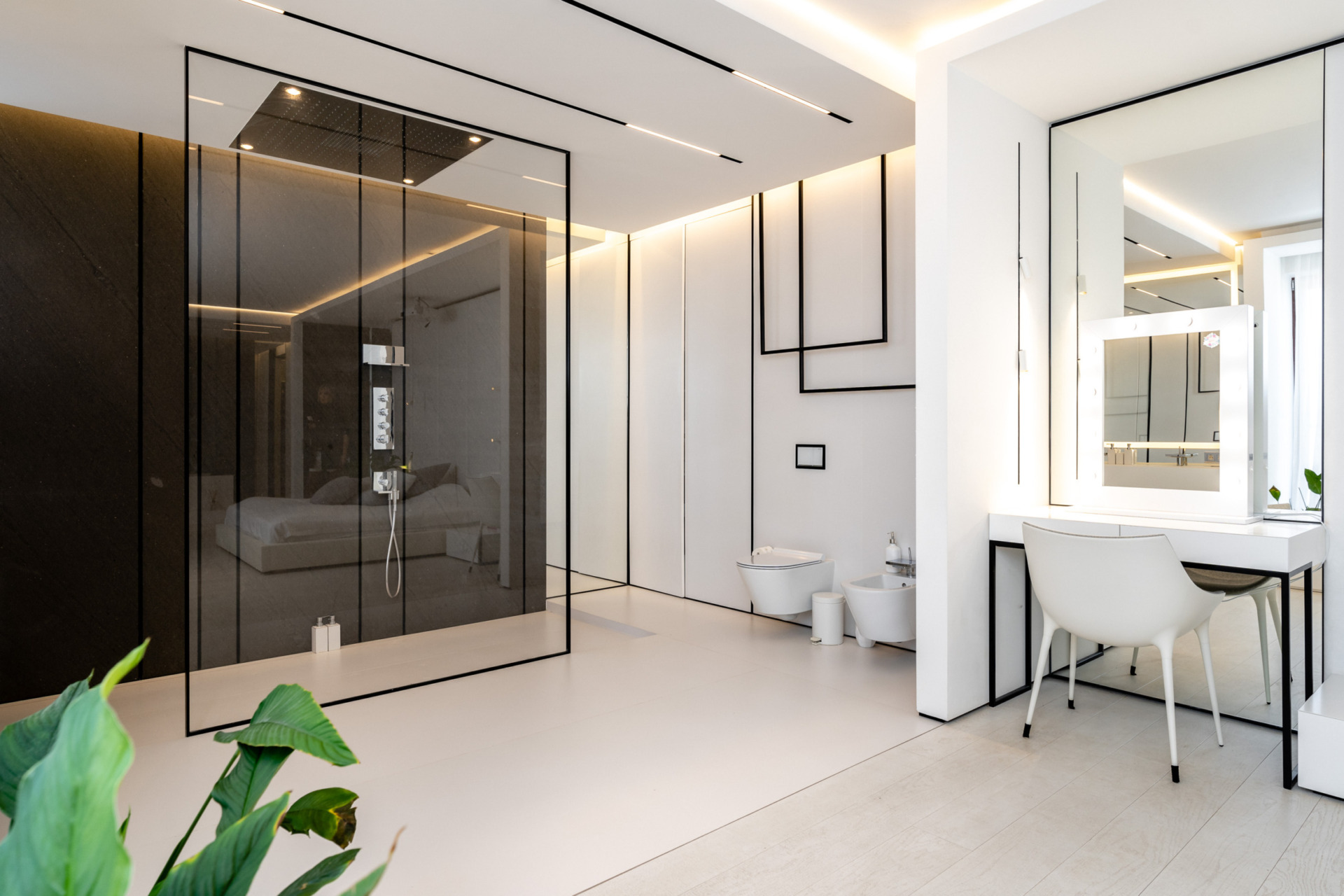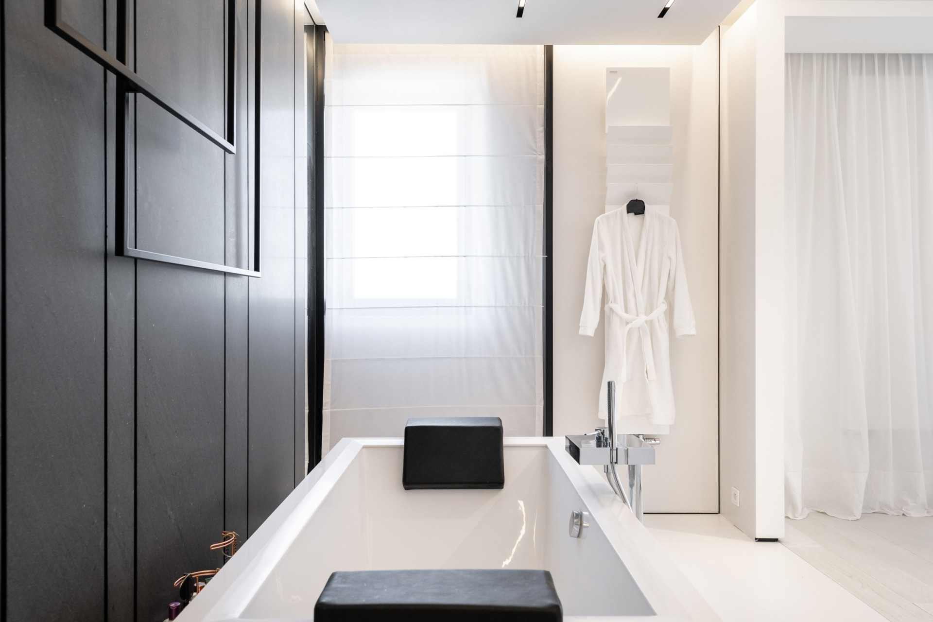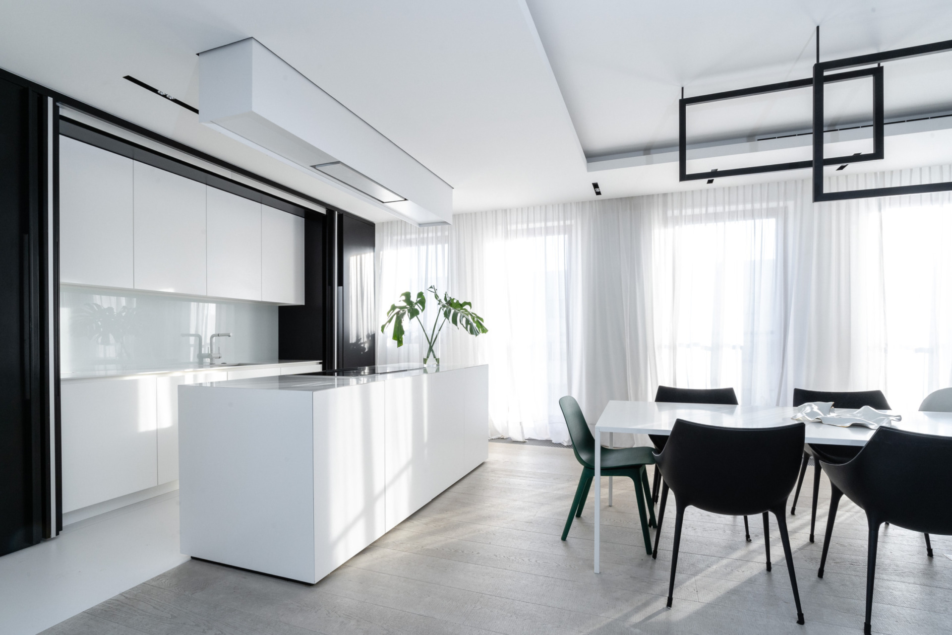 To zapierające dech w piersiach wnętrze, które podziwia się niczym dzieło sztuki, zaskakuje swoją funkcjonalnością i konsekwencją. Precyzyjna, zaprojektowana z dużą konsekwencją, zachwycająca przestrzeń.