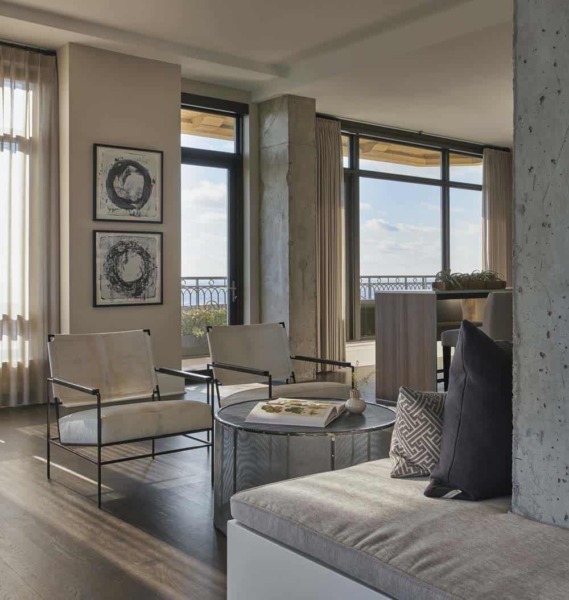 Wszystkie apartamenty będą miały duże przeszklone okna oraz taras z balustradą ze szkła.