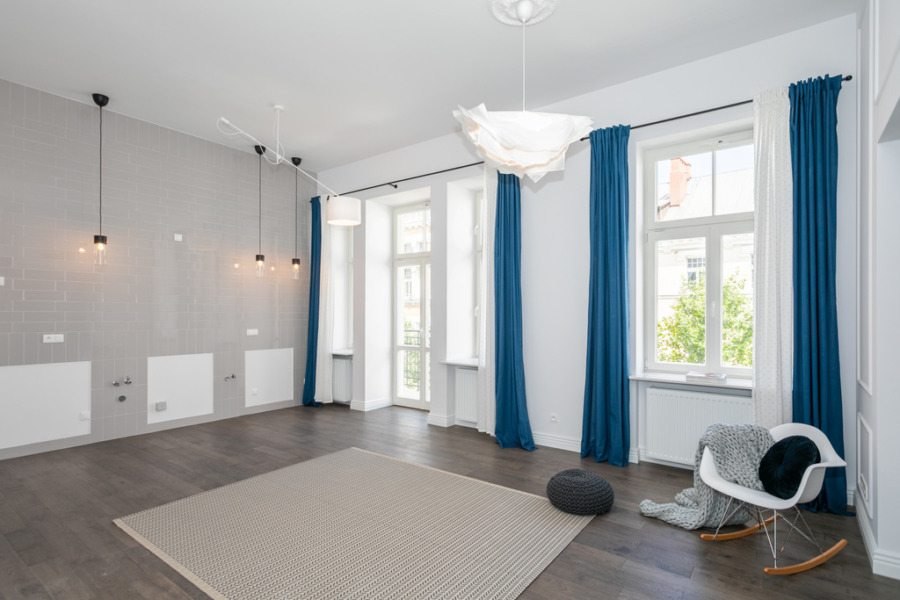 Jasne, wysokie na 3,5m wnętrza, duży balkon. Nieruchomość wykończona w wysokim standardzie.