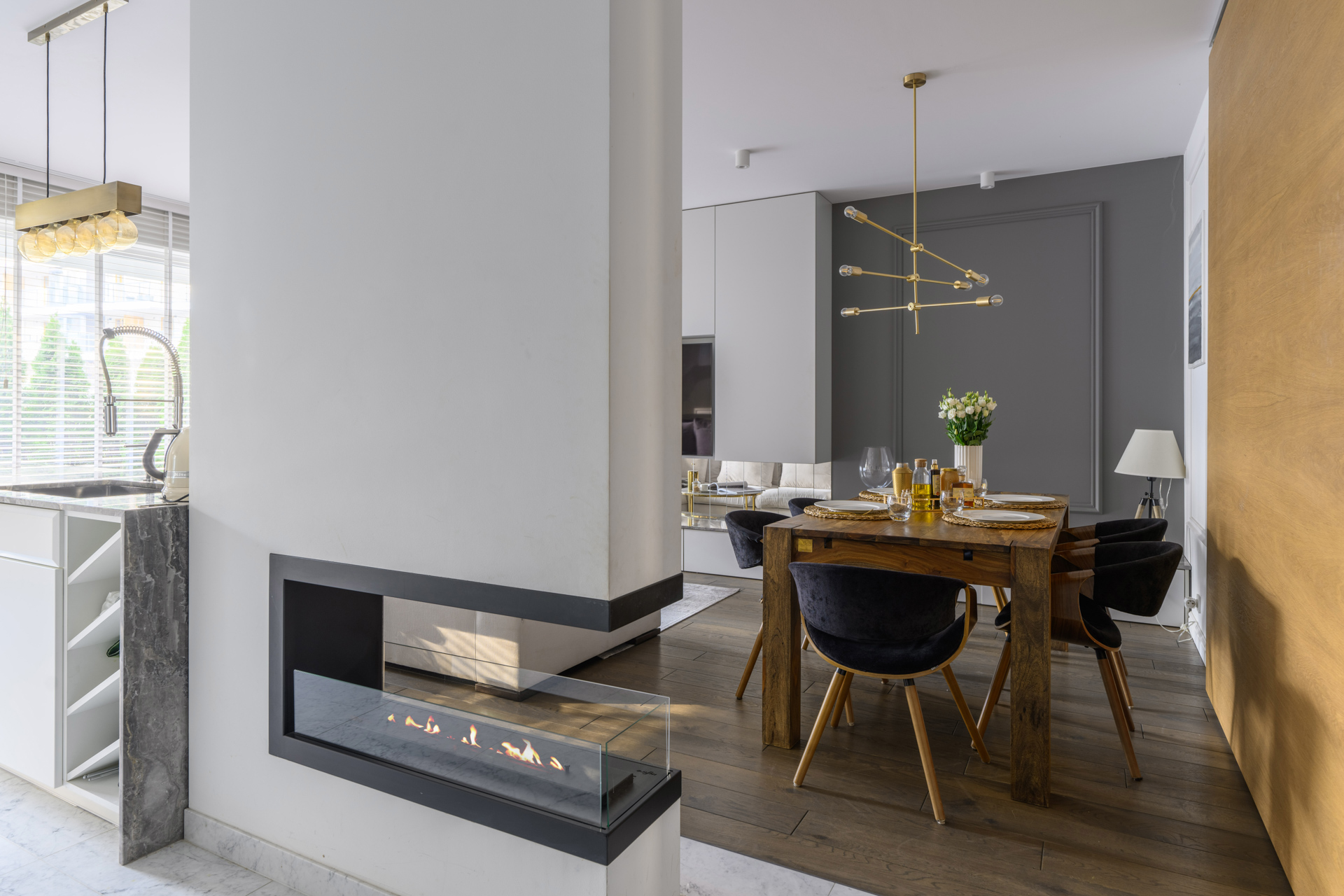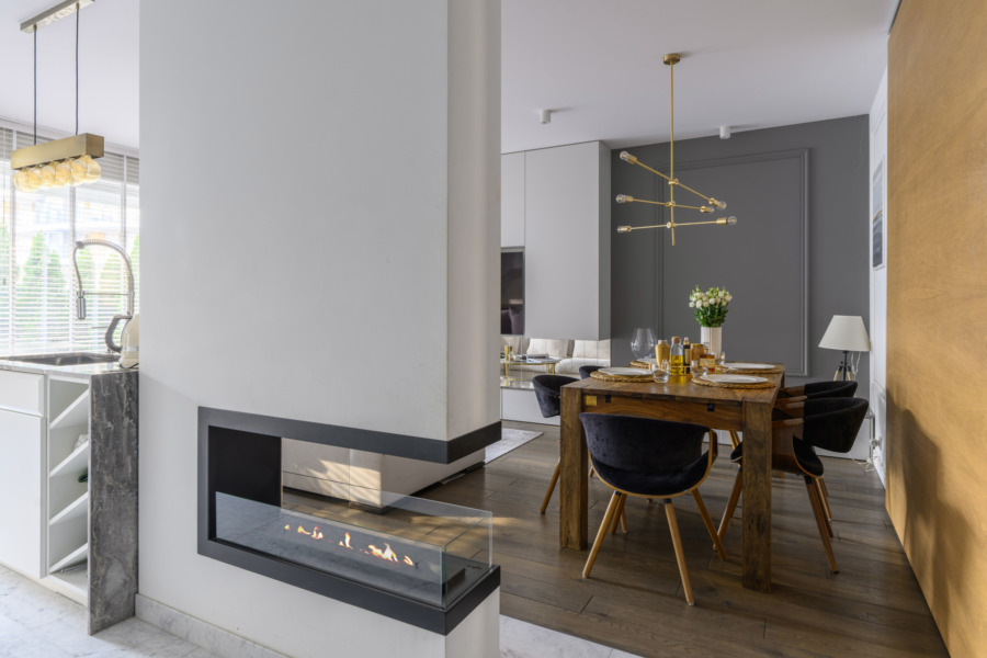 Dodatkowe elementy, takie jak kominek biopaliwo, tworzące wyjątkową atmosferę i dodatkowy komfort w mieszkaniu.