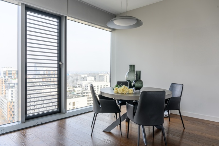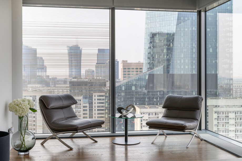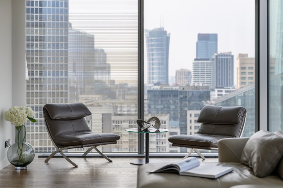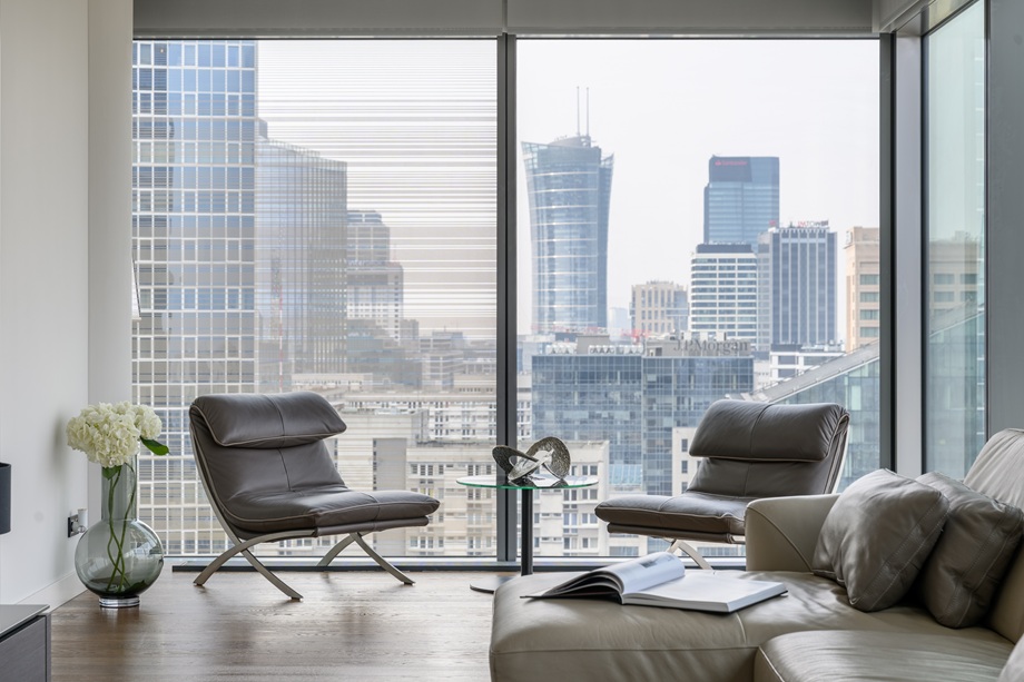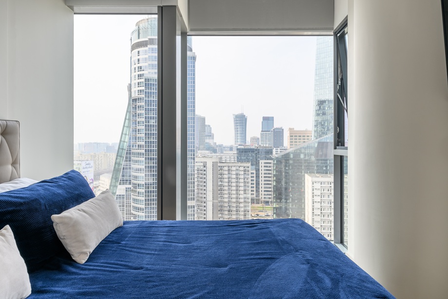 Fasada budynku została w całości wykonana ze szkła, dzięki czemu z budynku rozpościera się rewelacyjny widok na panoramę całego miasta. Z wnętrza tego luksusowego apartamentowca widać centrum stolicy, Pałac Kultury i Nauki.