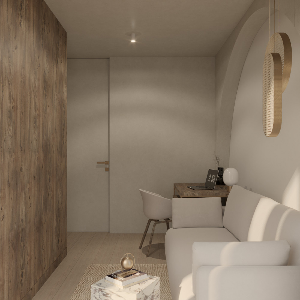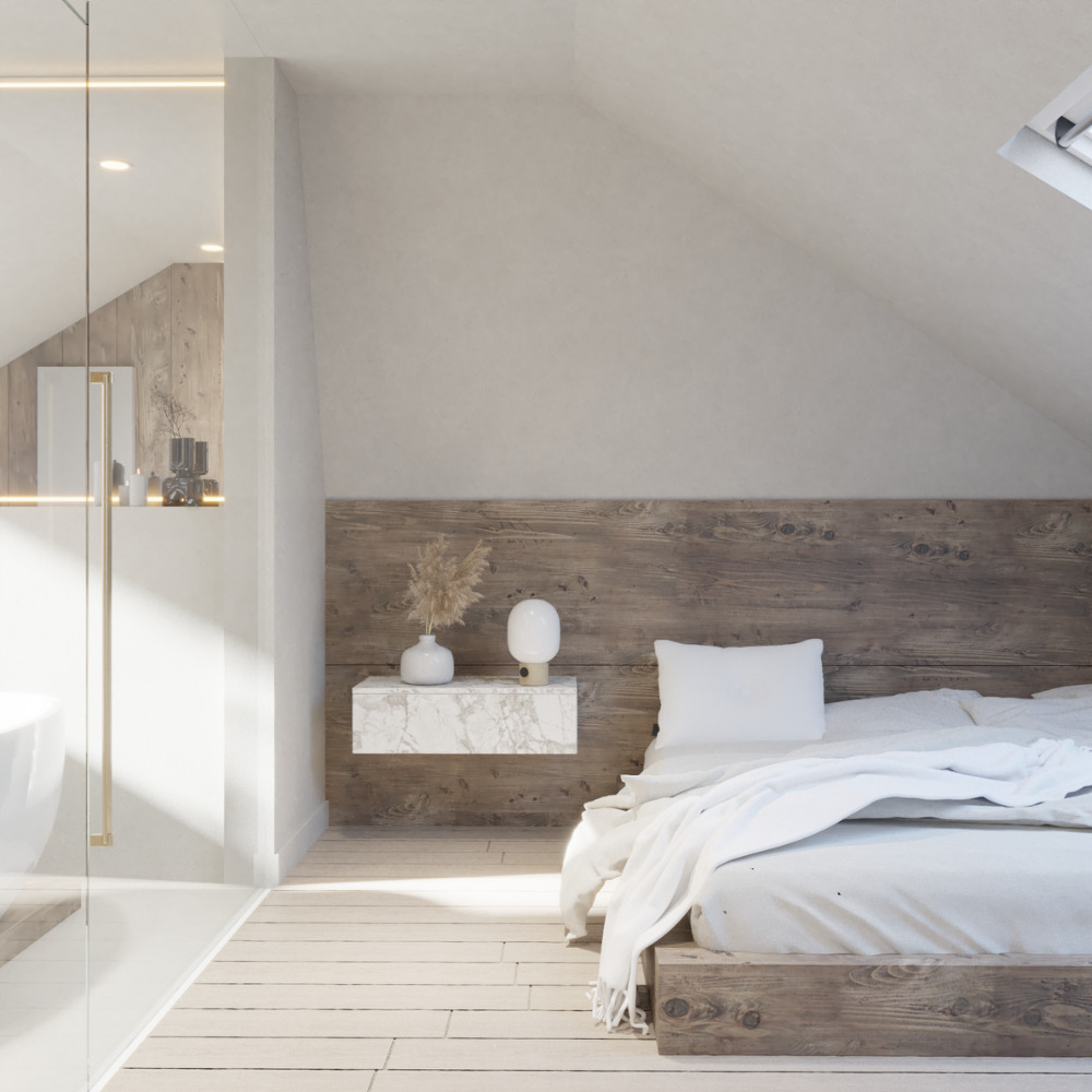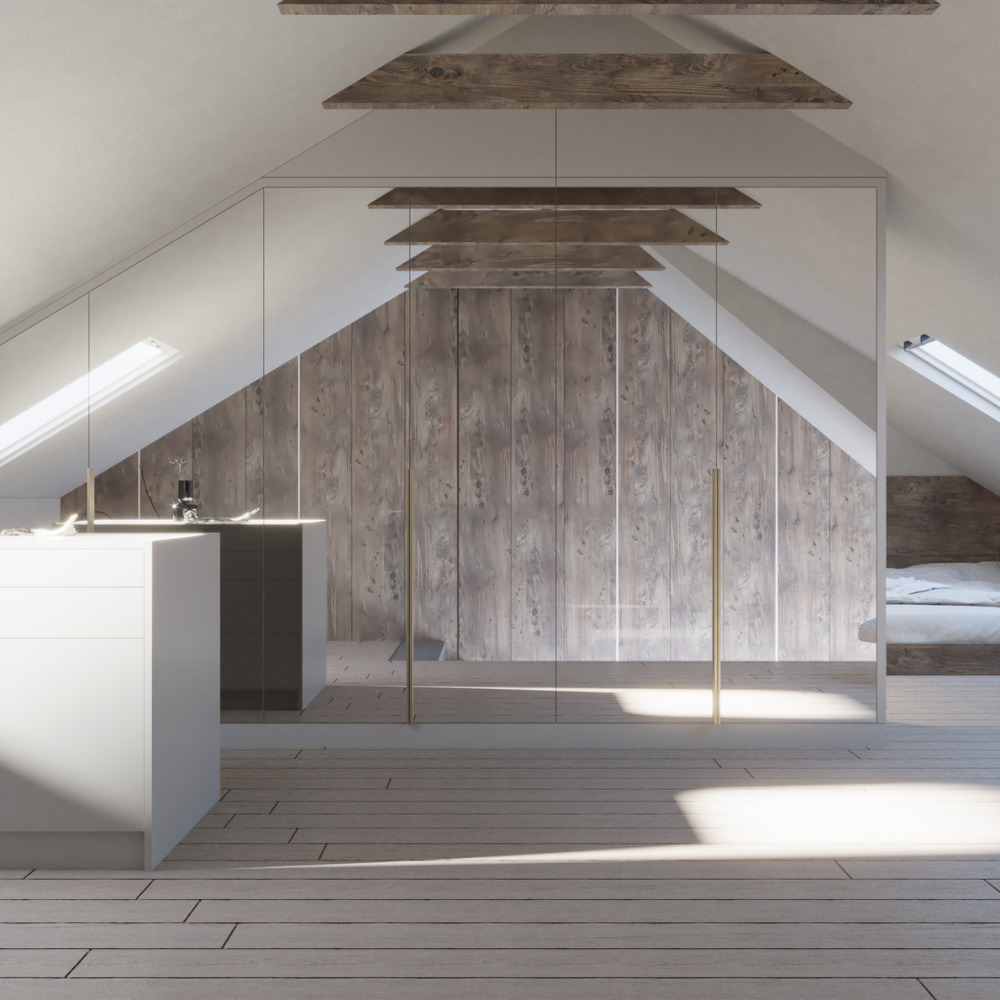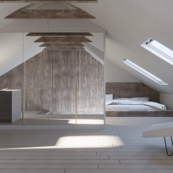 Możliwości aranżacyjnych tej przestrzeni jest wiele, dzięki czemu można uzyskać nawet do 4 odrębnych sypialni na dwóch piętrach. Mieszkanie może być kompaktowe zarówno dla pary jak i dla rodziny 2+3