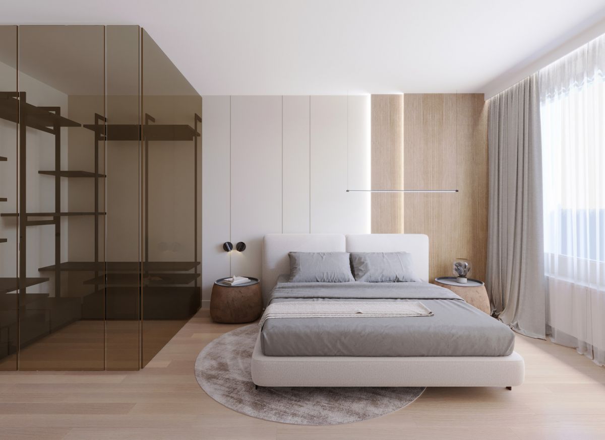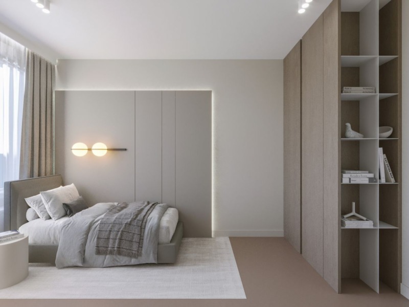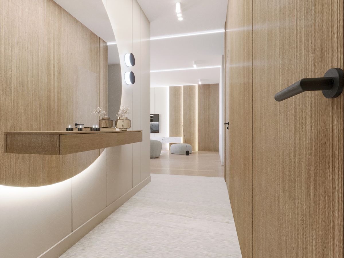 Apartament jest funkcjonalnie rozplanowany z wyraźnie wydzieloną strefą dzienną i nocną: