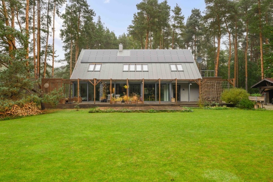 Cały dach domu pokryty jest panelami fotowoltaicznymi, co pozwala na w pełni ekologiczne i samowystarczalne dostarczanie energii. Obecnie właściciele mogą zaspokoić całkowite zapotrzebowanie na energię elektryczną, włączając w to ładowanie dwóch samochodów elektrycznych. To niezwykłe podejście do ochrony środowiska i minimalizowania wpływu na planetę.