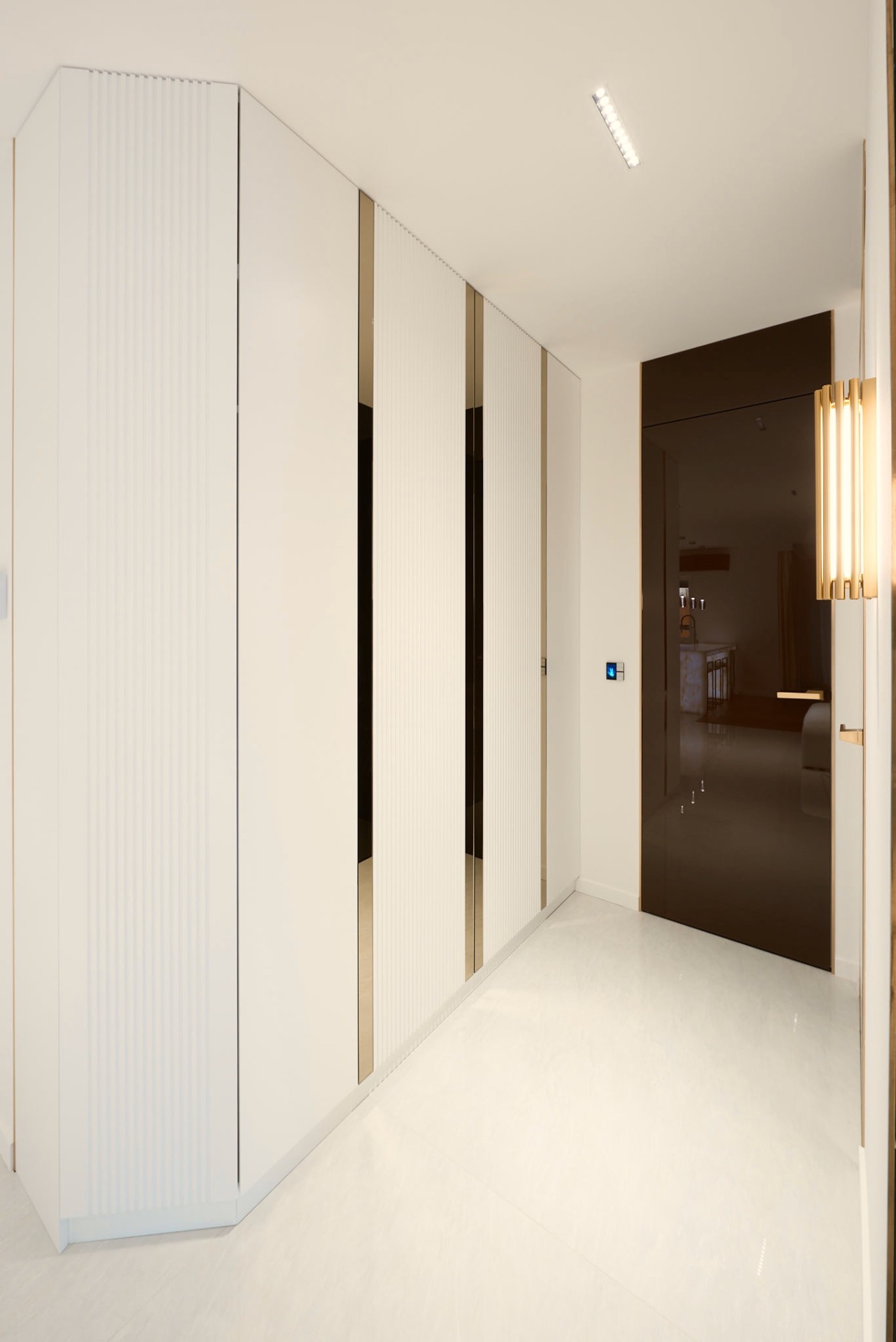 – Szafa w korytarzu z wewnętrznym podświetleniem i miejscem na pralkę