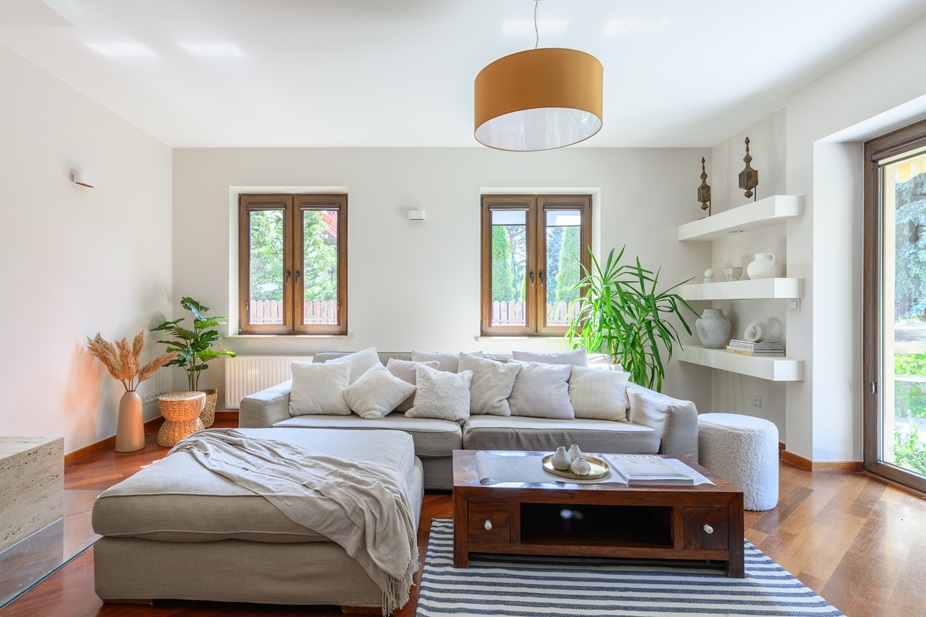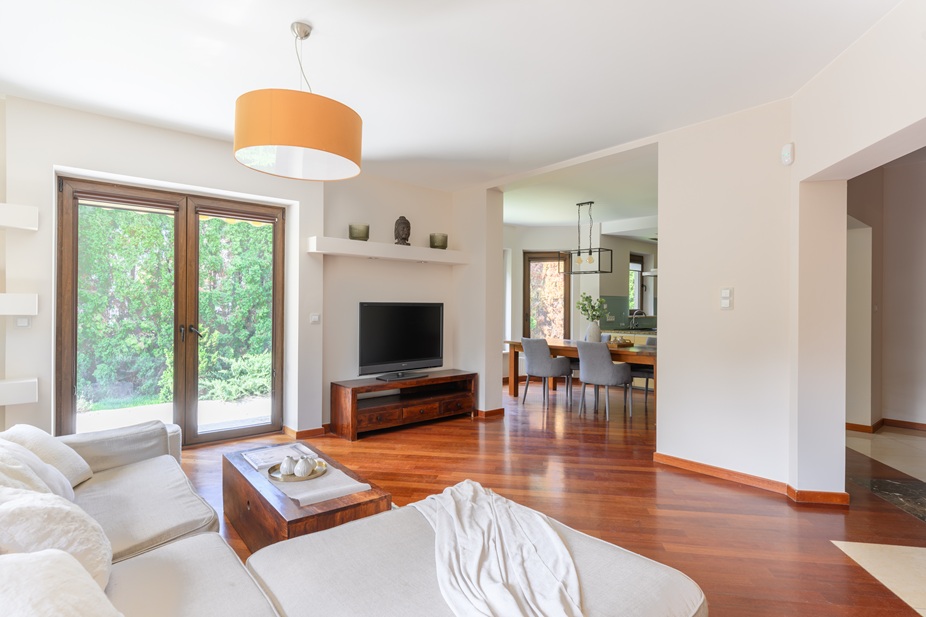 → Przestronny salon z bezpośrednim wyjściem na ogród