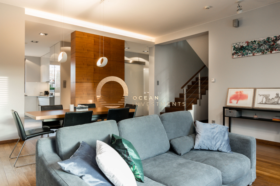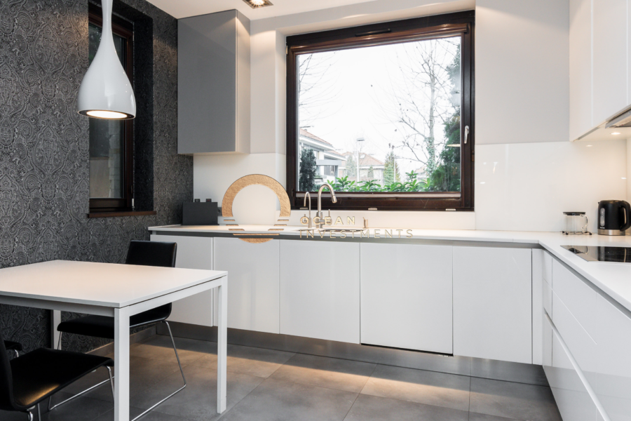 The estate enclosed and it’s guarded 24/7. It also has thermal imaging camera system, 2 playgrounds, a court, recreational gardens, a lot of additional parking spots all over the compound and 3 security facilities with entrances. To the center of Warsaw it’s only 16 km.