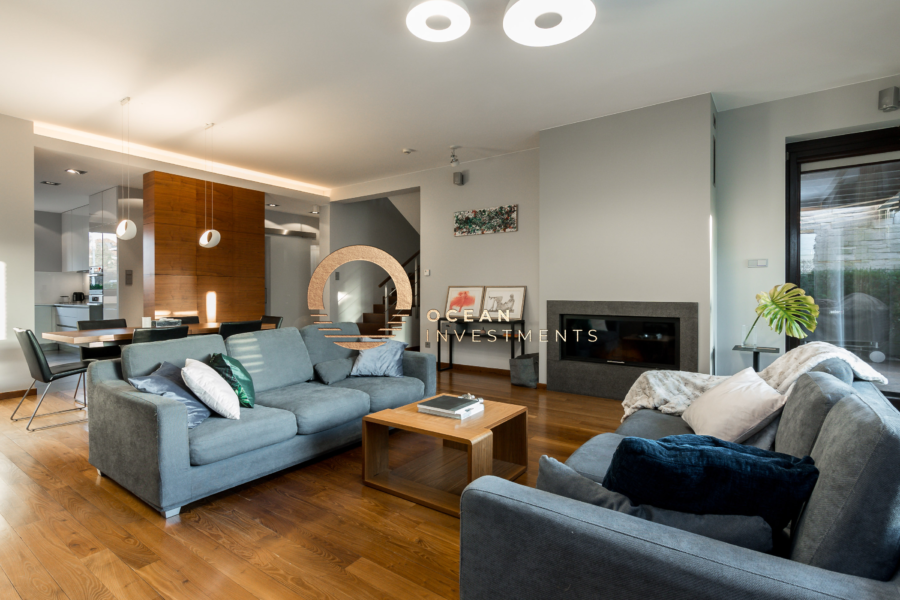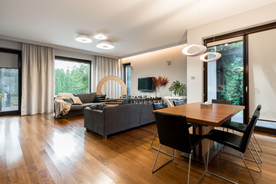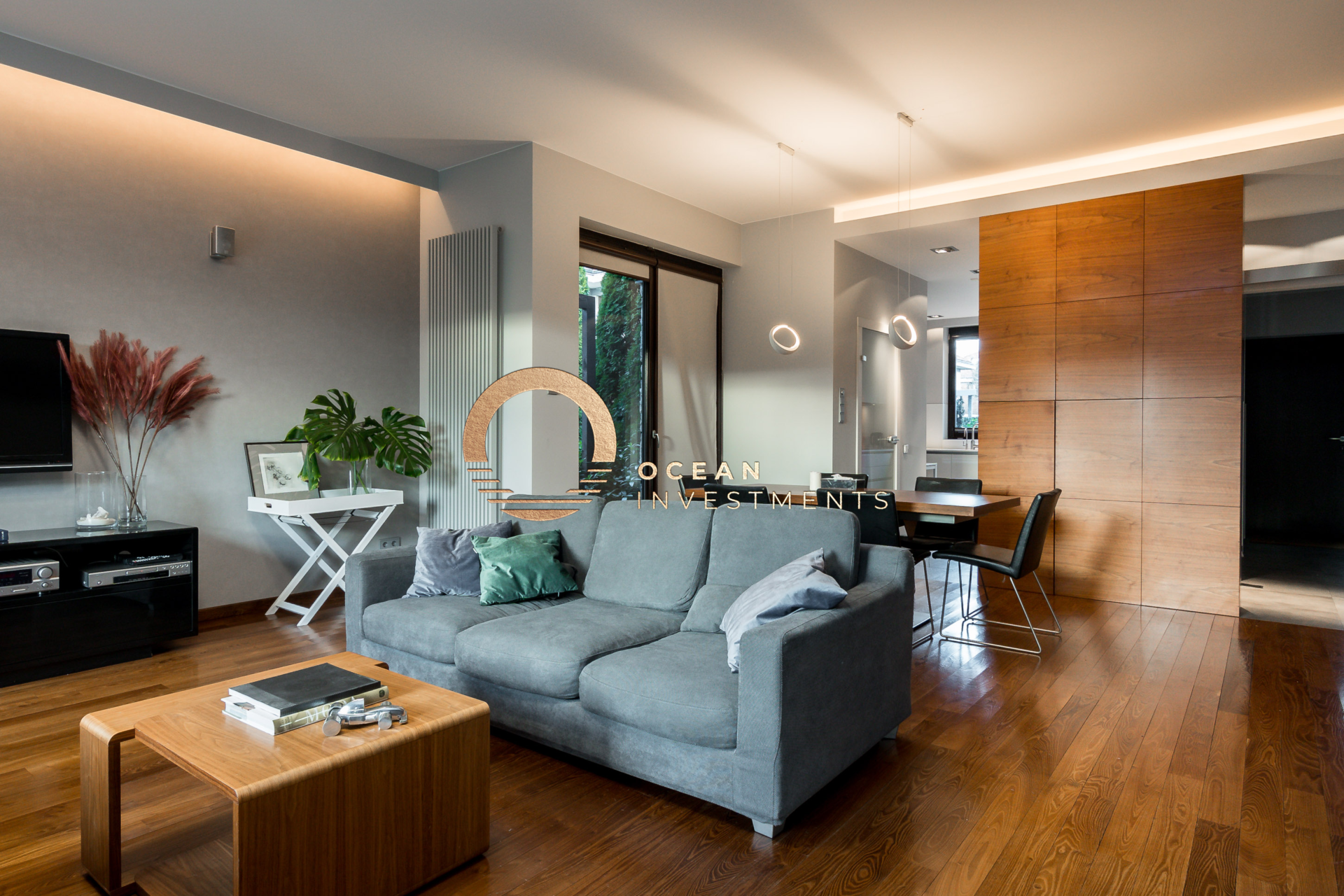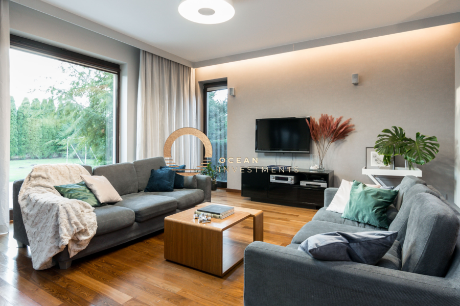 The house is located in a quiet street in the prestigious Konstancja Compound. It has a big and beautiful garden. The layout of rooms, bedroom and bathrooms are suitable for families with 2 or 3 children.