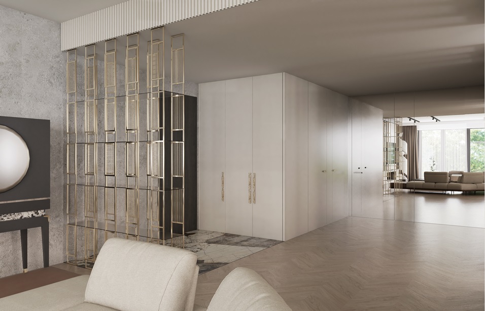 Apartament z ekspozycją okien na trzy strony świata, z których rozpościera się fenomelnalny widok na Wisłę i jej przeciwległy brzeg.