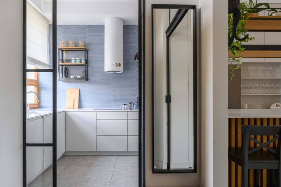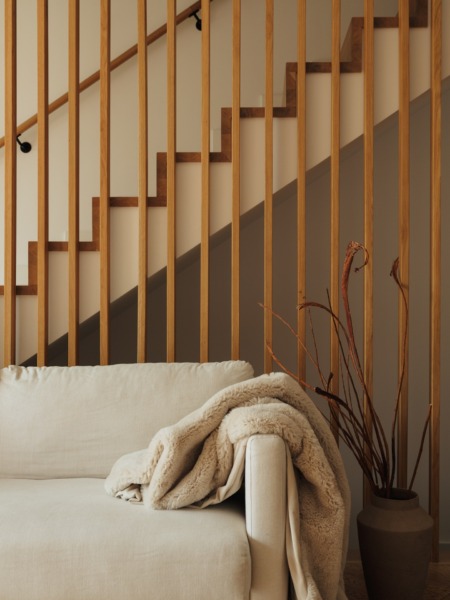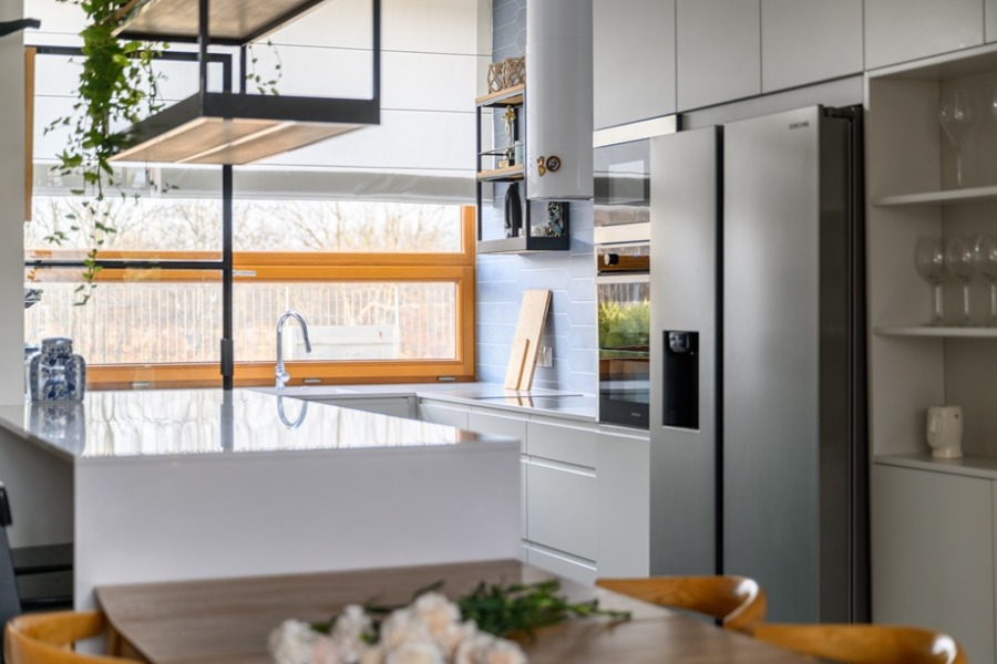 Dom został funkcjonalnie podzielony na dwie główne strefy: część dzienną i prywatną, co zapewnia mieszkańcom maksymalny komfort. Projekt wnętrza został przygotowany przez architekta wnętrz, a do jego wykończenia zostały użyte najwyższej jakości materiały. Dom jest wyposażony w ogrzewanie podłogowe, a na dachu znajduje się instalacja fotowoltaiczna o mocy 5,4 kWp, która zaspokaja roczne zapotrzebowanie na energię elektryczną